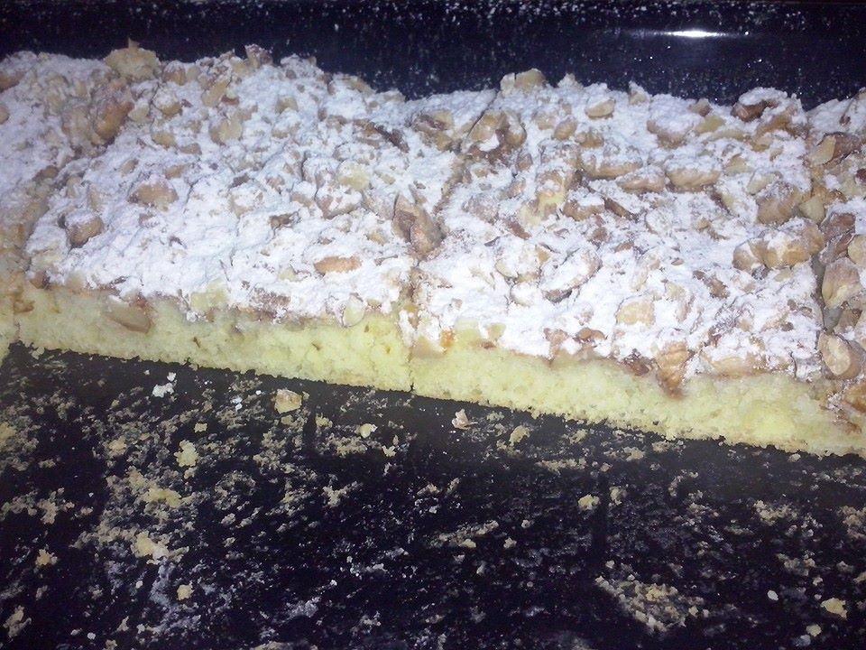 Spravime klasicke piskotove cesto, vylejeme na plech a na vrch ozdobnym spicom vytvarujeme tzv. mriezku. Pecieme na cca 180stupnoch.