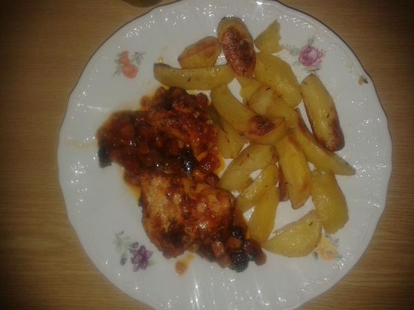 ahojte, ja som dnes robila kuraciu polievku, pecene nalozene kura podla tohto receptu http://www.mimibazar.sk/recept.php?id=484, k tomu marinovane zemiaky a zeleninovy salat, piekla som tvarohovy kremovnik, minule som robila orechovy a slubila som foto, tak pridavam aj to