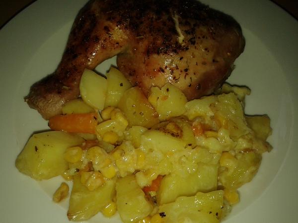 Tento týždeň sa stravujeme v práci - napr. včera krkovička/kapusta/knedľa, dnes mletý rezeň so syrom a zemiaková kaša. Pridávam foto z víkendu - bublanina s domácimi mrazenými ríbezľami a pečené kuracie stehná posypané zmesou Kura 7 bylín s pečenými zemiakmi (očistené zemiaky nakrájame na kocky, pridáme očistenú a nakrájanú mrkvu so steril. kukuricou. Na plechu zmiešame, polejeme olejom a troškou vody, osolíme. Na to naukladáme kuracie stehná,ktoré posypeme zmesou korenín-my máme radi Kura 7 bylín. Dáme piecť a cca 15min. pred koncom pečenia polejeme 33% smotanou a dáme dopiecť. A zajtra bude chlebík z http://mare.remare.sk/index.php/pecenie-domaceh....