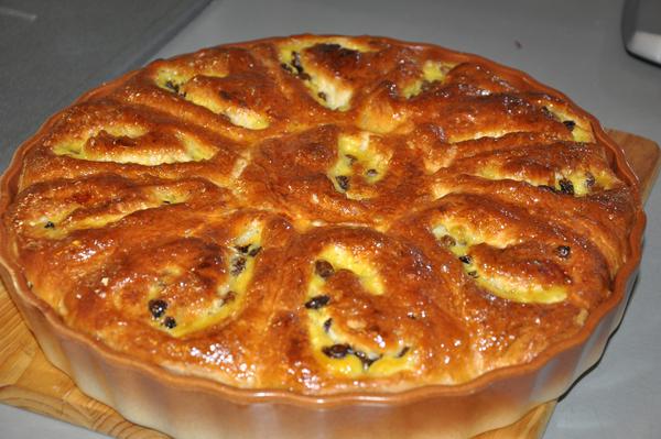 Vyber cesto z misky na pomúčený povrch a vytvor y neho valčekom obdĺžnik asi 50x20 cm, mixérom si ešte trochu rozmiešaj krém a rovnomernou vrstvou natri na cesto. Na to ešte posyp hrozienka a môžeš aj čokoládové chipsy/guličky/ a zaroluj, tak že ti vznikne 50 cm rolka, ktorú teraz nakrájaš na 5 cm kúsky. Teraz ich môžeš vložiť do okrúhlej zapekacej mise s priemerom okolo 33 cm s papierom na dne. Kúsky tam rozlož ,tak aby boli medzi nimi medzery. Ukladaj reznou stranou hore a dole. Potri kúsky rozšľahaným vajíčkom. Nechaj ešte podkysnúť asi 40 min. Potri ešte raz vajíčkom a daj do predhriatej rúry na 180 stupňov. Prvých desať minút peč pri tejto teplote, potom zníž na 170 a peč ďalej asi 25 minút. Vyber z rúry a dobre potri javorovým, alebo cukrovým sirupom. Nechaj vychladnúť.