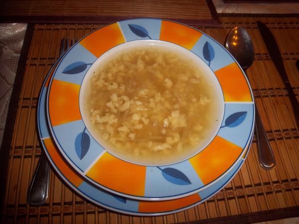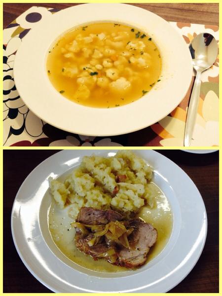 zeleninová polievka s krupicovými haluškami 🙂 krkovička pečená na zemiakoch 🙂 osie hniezda v inej podobe 🙂 🙂 🙂