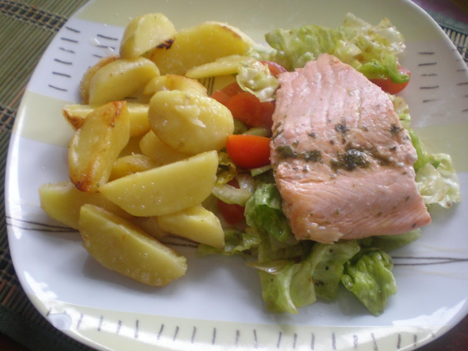 v nedeľu som robila zemiakovú polievku na pokyslo - mrkva, petržlen, stonkový zeler, kôpor, varené najce a jedno aj zatrepané , druhé boli pečené kapre na jablkách, citróne a tymiáne s troškou balzamika. šalátik bol - jablko, mrkva a steril cvikľa, koláčik som robila tvarohovoškoricové hrnkové cesto a mrazené slivky, len som ho dlhšie piekla , tak je tuhší, inak super