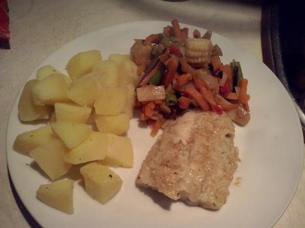 dnes brokolicová krémová polievka, tá ostala aj na zajtra, vyprážané rybie filé, zemiaková kaša, mrkvovo jablkový šalát s kúskami pomaranča, losos s pomarančami, tymiánom....zajtra bude bravčové mäsko pečené spolu zo zemiakmi a nejaká zeleninka k tomu 😉