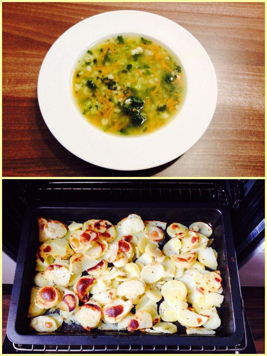 ahojte...pondelok, utorok som nevarila dostali sme z oslavy zemiakový šalát, rezne, kolače...včera mrkvovo-cukinová polievka s kuskusom, ryžový jablkovo-kokosový nákyp s kompotom , plnený chlieb šunkou a syrom gorgonzola,paprikou... a dnes včerajšia polievka lazane s kozím syrom a špenátom a na večeru som spravila pizza veniec s roznou náplnou