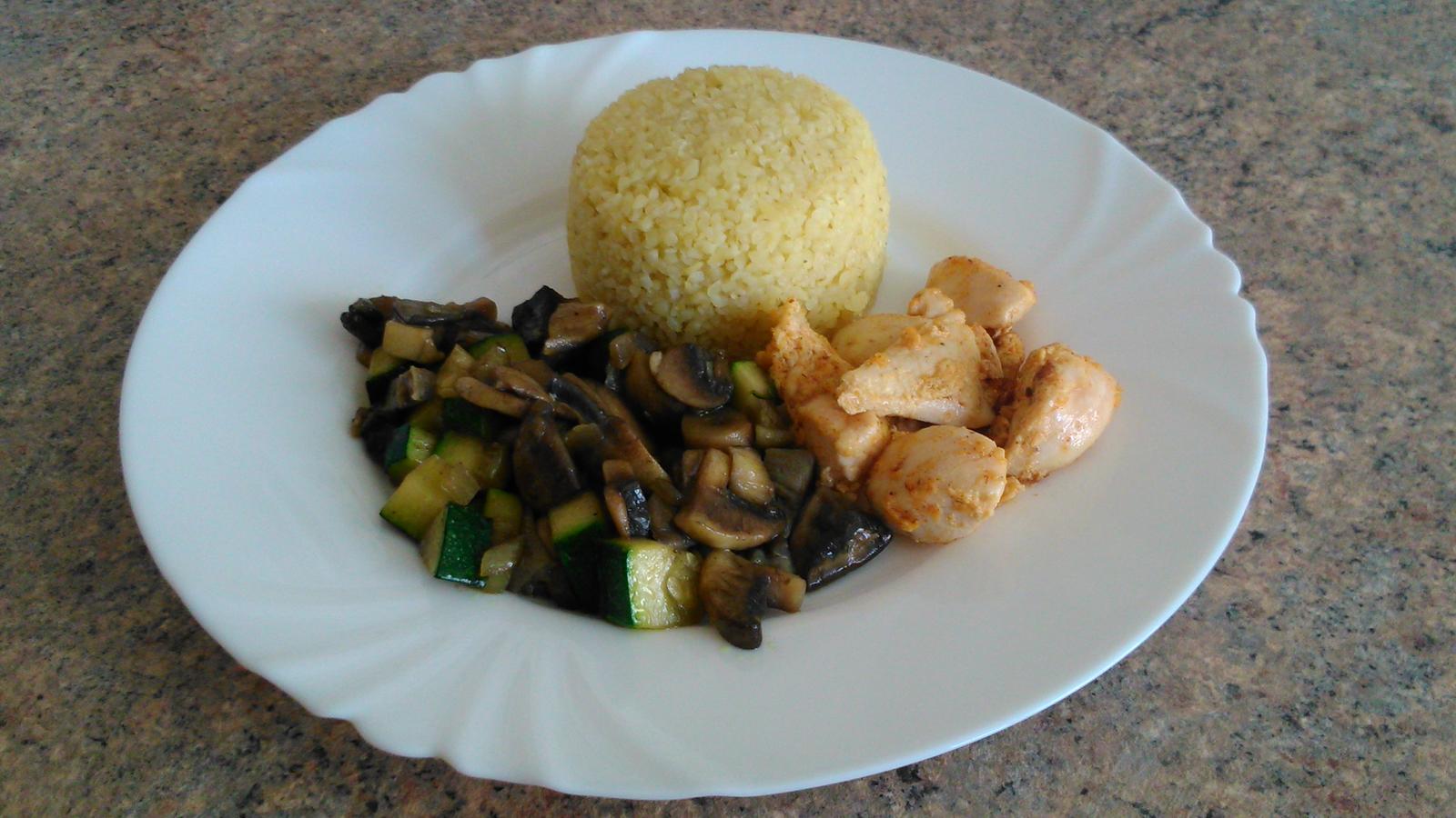 Včera som na obed nevarila,dojedla sa šošovicová polievka, na večeru si deti vypýtali žemličky s kečupom, čínskou kapustou, marinovaným kuracím mäskom ...no pre nich nespravím...😉 ...dnes mal u nás premiéru bulgur , ktorý som objavila vďaka tejto téme a môžem vyhlásiť že je supeeeer 🙂 .... takže dnes bulgur, marinované na kúsky nakrájané kuracie prsia, a podusené šampiňóny, hliva, cuketa..krásny slnečný deň vám prajem kočky 😉