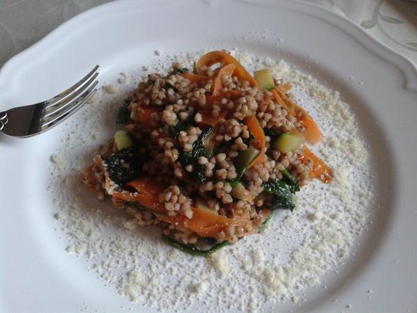 Zeleninova pol. (Cvikla,bataty,stop.zeler,fazulove lusky) a tvarohove knedlicky s jahod.omackou.