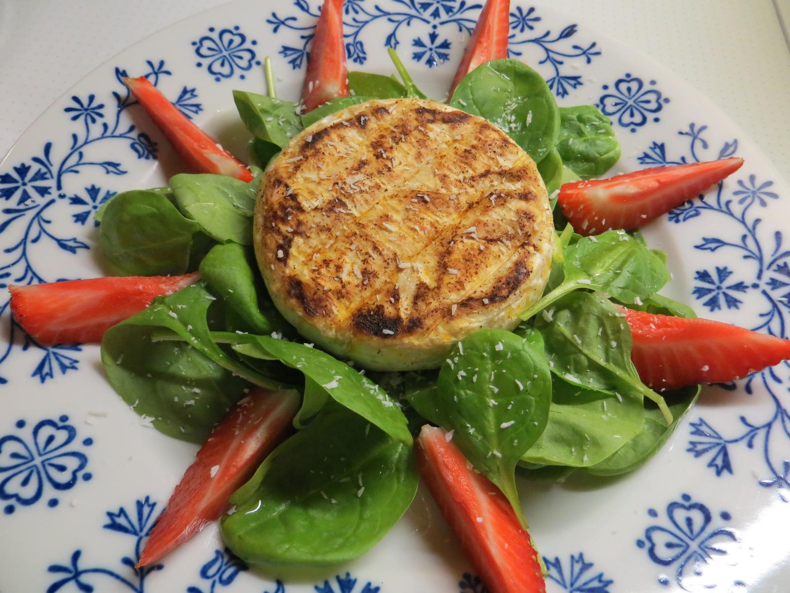 grilovany kozi encian so spenatom a jahodami