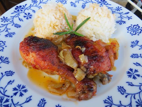 pecene kura s paradajkovo-medovo-cesnakovou marinadou a jasminova ryza