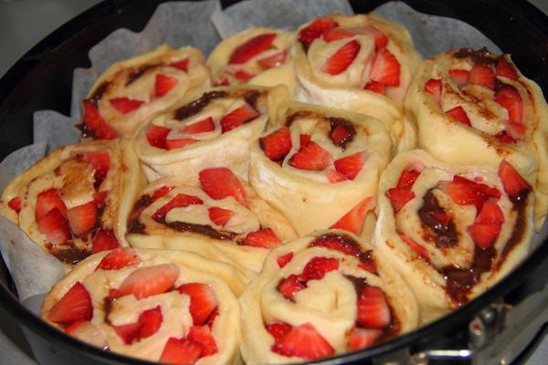 do cesta som dala 80g cukru,nie toľko,čo je v recepte a do vnútra pár kopčekov nutelly a jahody 😉