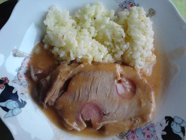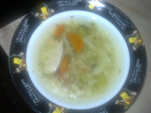 rajcinova polievka s pismenkami, kuraci perkelt s haluskami/ryzou 🙂