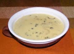 Cibuľová polievka, zemiaková kaša, pečené jaternice,kyslá uhorka.