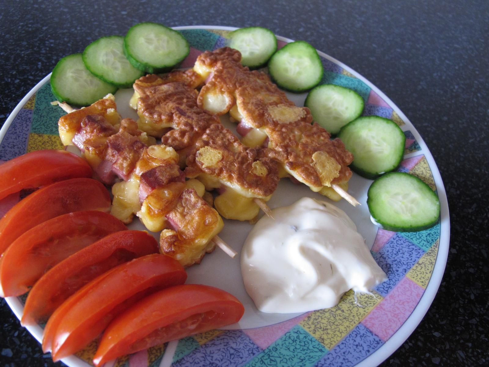 dneska kuracie mesko so sunkou syrom a broskynou k tomu je ryza , hranolky, obloha, polievka dneska je takzvana kulajda a ak stihnem spravim zltkove rezy orechove dobru chut🙂