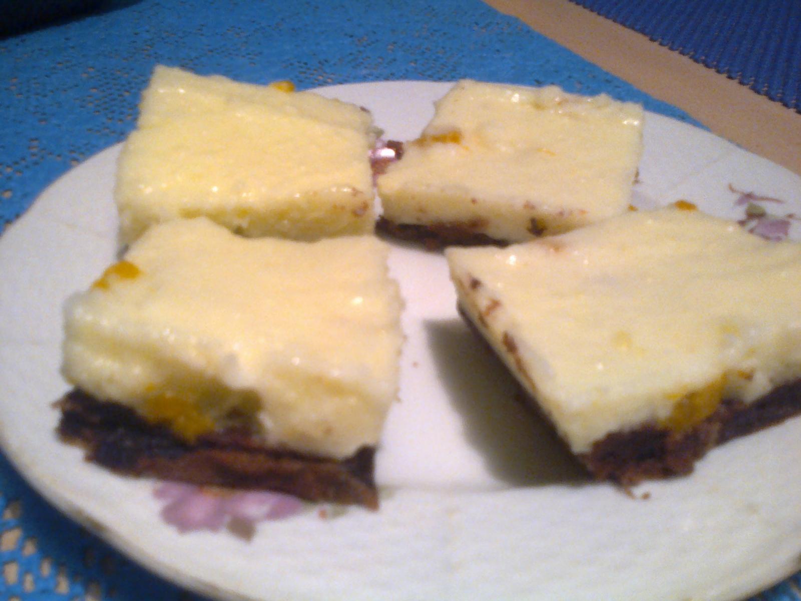 Žĺtka vymiešame s cukrom do peny, pridáme kakao. Vyšľaháme si tuhý sneh z bielkov a pridáme ho k žĺtkom, opatrne zamiešame. Cesto vylejeme na menší plech vystlaný papierom na pečenie a pečieme pri teplote 170-180 stupňov asi 10-15 minút. Či je cesto upečené skúsime špáradlom. Koláč necháme vychladnúť a medzitým si pripravíme polevu. Podľa návodu si pripravíme puding Greme Olé, potom doňho pridáme jogurt a nakoniec nakrájané mandarinky. Potom si pripravíme želatínový stužovač podľa návodu a pridáme ho k pudingovej hmote. Vymiešame a nalejeme na korpus. Necháme odležať v chladničke. Zákusok je osviežujúci a ľahký.