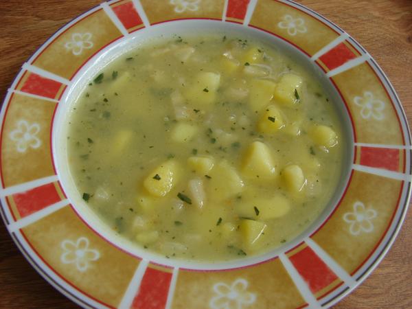 brokolicová krémová polievka, mäso na šťave s hráškom, varené zemiaky, čalamáda 🙂