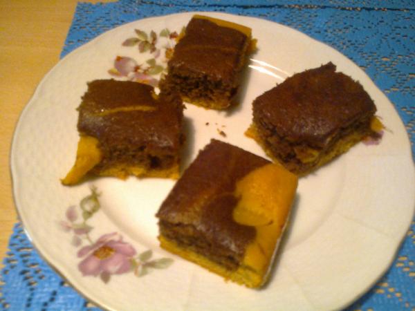 U nás v sobotu dojedačky z piatku a na želanie priateľa niečo sladké. Torta s broskyňami, BB keksami a čokoládovo-jogurtovou plnkou. A keďže aj mňa začala naháňať mlsná, tak som si urobila koláčik z Norbi Update múky, je geniálny, ale treba ho vedieť správne ochutiť, lebo tá múka má špecifickú chuť (vonia ako šrot pre prasiatka).