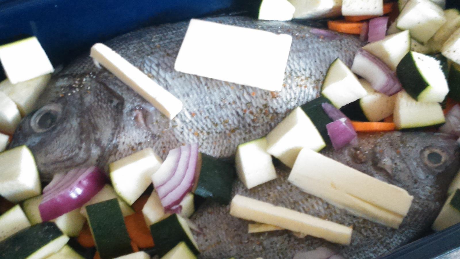 dnes paradajková polievka s haluškami, tá bude aj na zajtra a piekla som rybky (pražma modravá) , pre mňa len zo zeleninou (cuketa, červená cibuľka, mrkva), pre deti k zeleninke aj zemiaková kaša ...a rybka bola úžasnááá, malá doslova tanier vylízala 😉