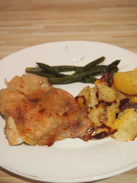 vcera sosovicova polievka, zapekany pangasius a zemiakova kasa. dnes pecena krkovicka s cibulou a ryza 🙂