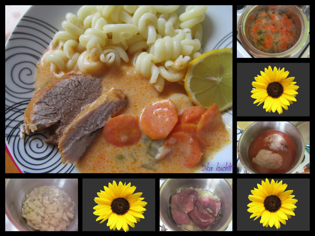 dnes kurací vývar s rezancami a bravčové na rezance s ryžou a zeleninovým šalátom 😉 ako dezert odpaľované venčeky s vanilkovým krémom 😉