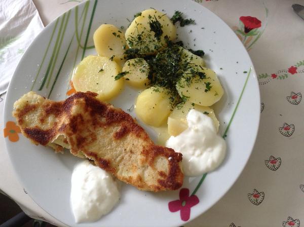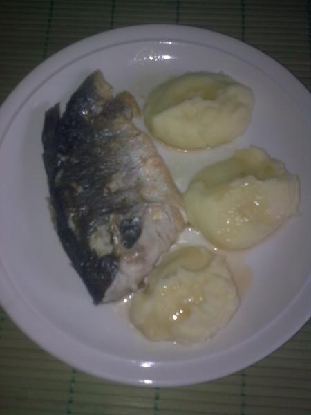 bryndzove halusky so slaninkou, a pre mna pecena tilapia a anglicka zeleninka 🙂