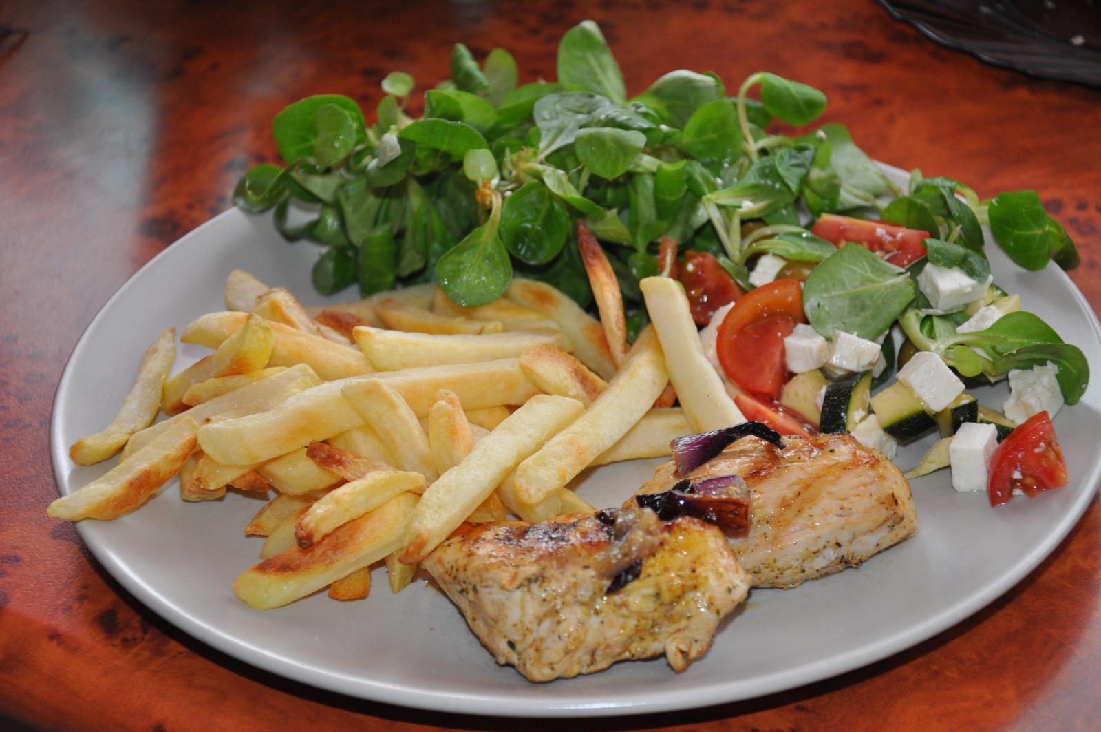My sme. Mali bravcove kare v marinade ( bylinky- rozmarin, tymian, kopor, oliv. olej, citonova stava, cesnak, korenie a sol), priloha plnene pecene sampinony a pecene zemiaky k tomu 🙂