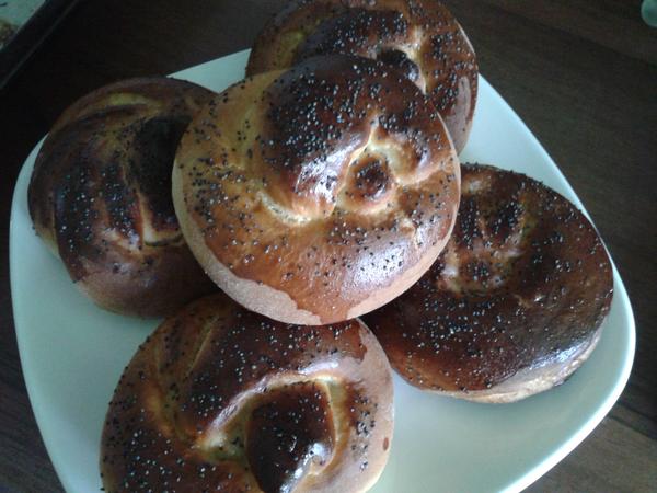 Múku , soľ, droždie zmiešame, prilejeme vodu s mliekom a žĺtkom, miesime a pridáme 2 lyžice oleja. Dobre a čím dlhšie miesime, tým lepšie. Pred koncom miesenia pridáme semienka a zvyšný olej. Poprášime múkou a v teple 15 minút necháme kysnúť.