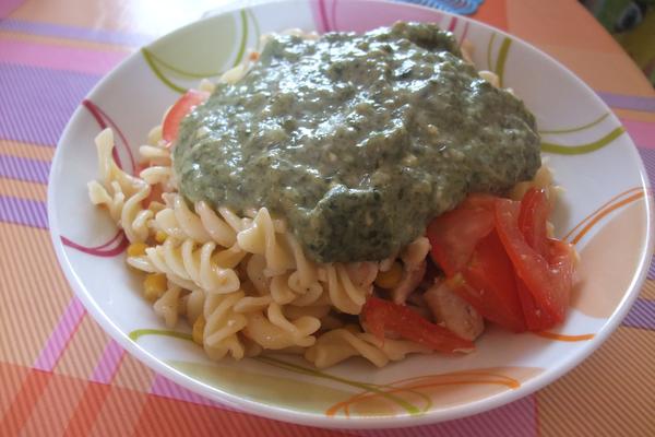 @gimli274 Cestoviny s maslovo-syrovo-špenátovou omáčkou