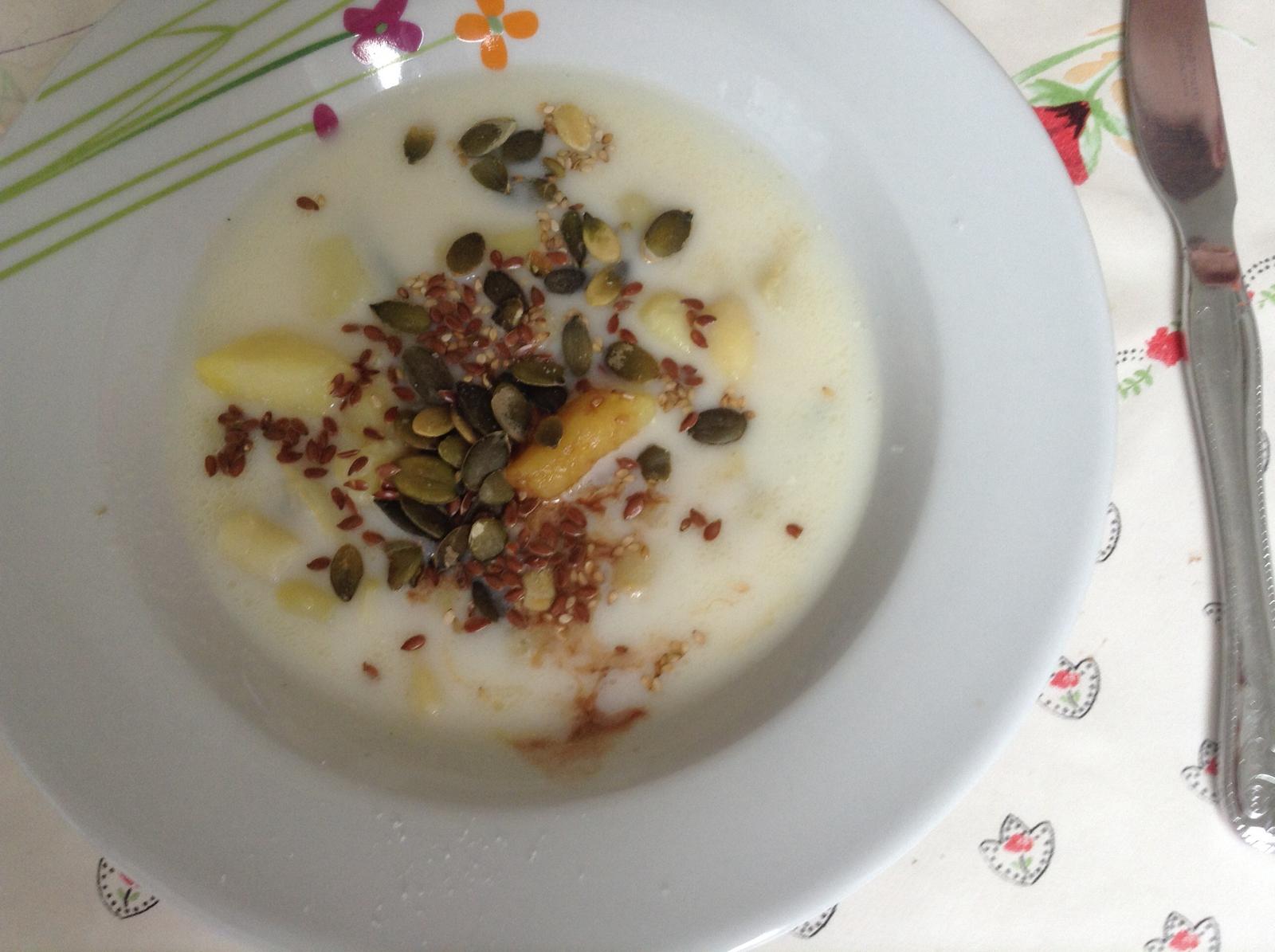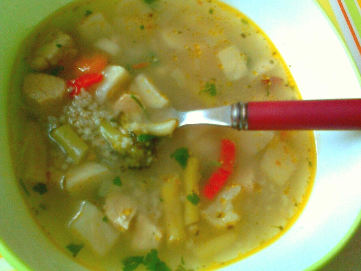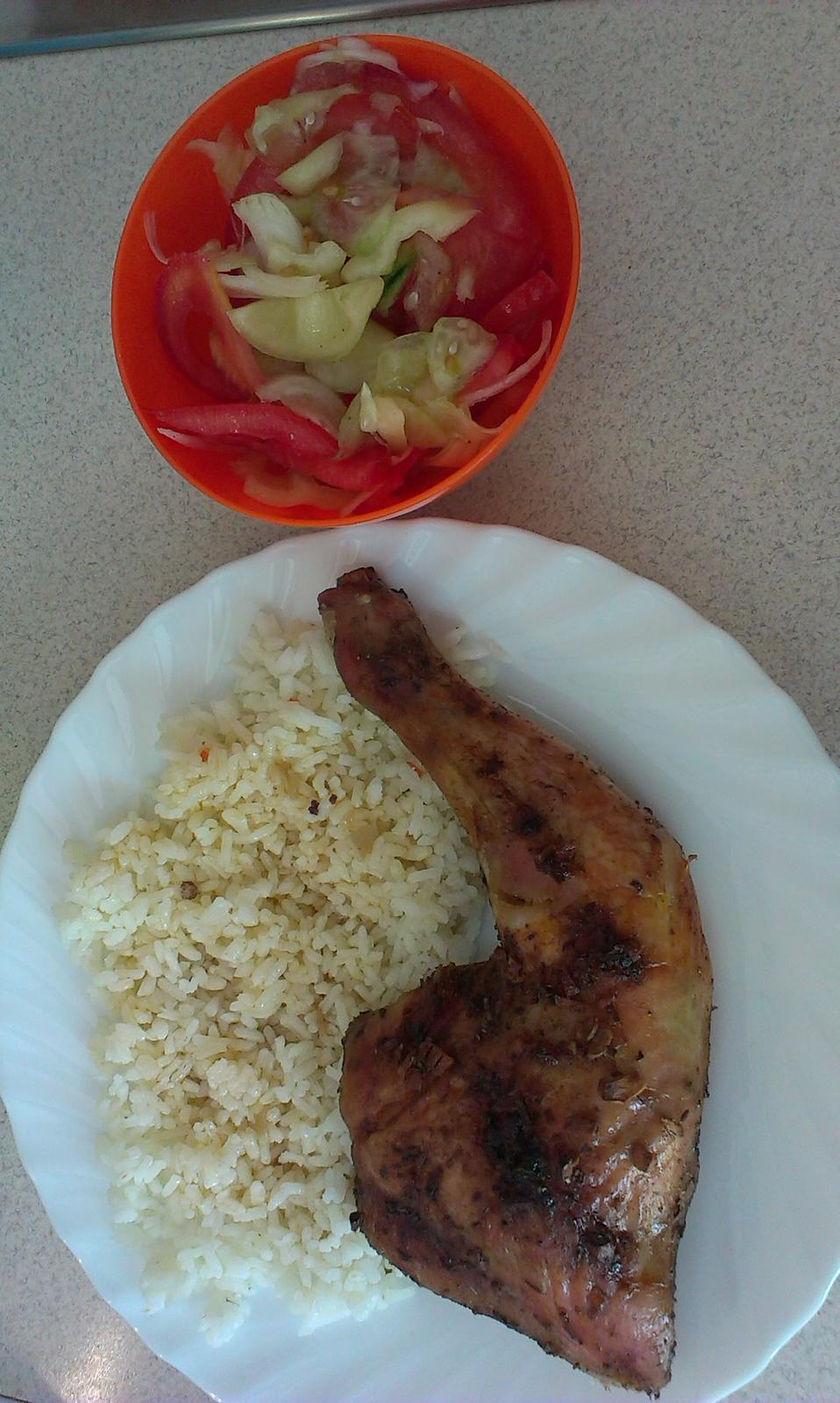 Vcera sme mali madarsky gulas s knedlou a dnes kuraci vyvar a rybie file so zemiakmi a uhorkovym salatom a kolacik so spaldovej muky so struhanymi bananmi a cokoladovou polevou