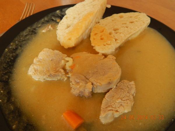kyslá zemiaková polievka, pečené mäso, knedľa, kapusta 🙂