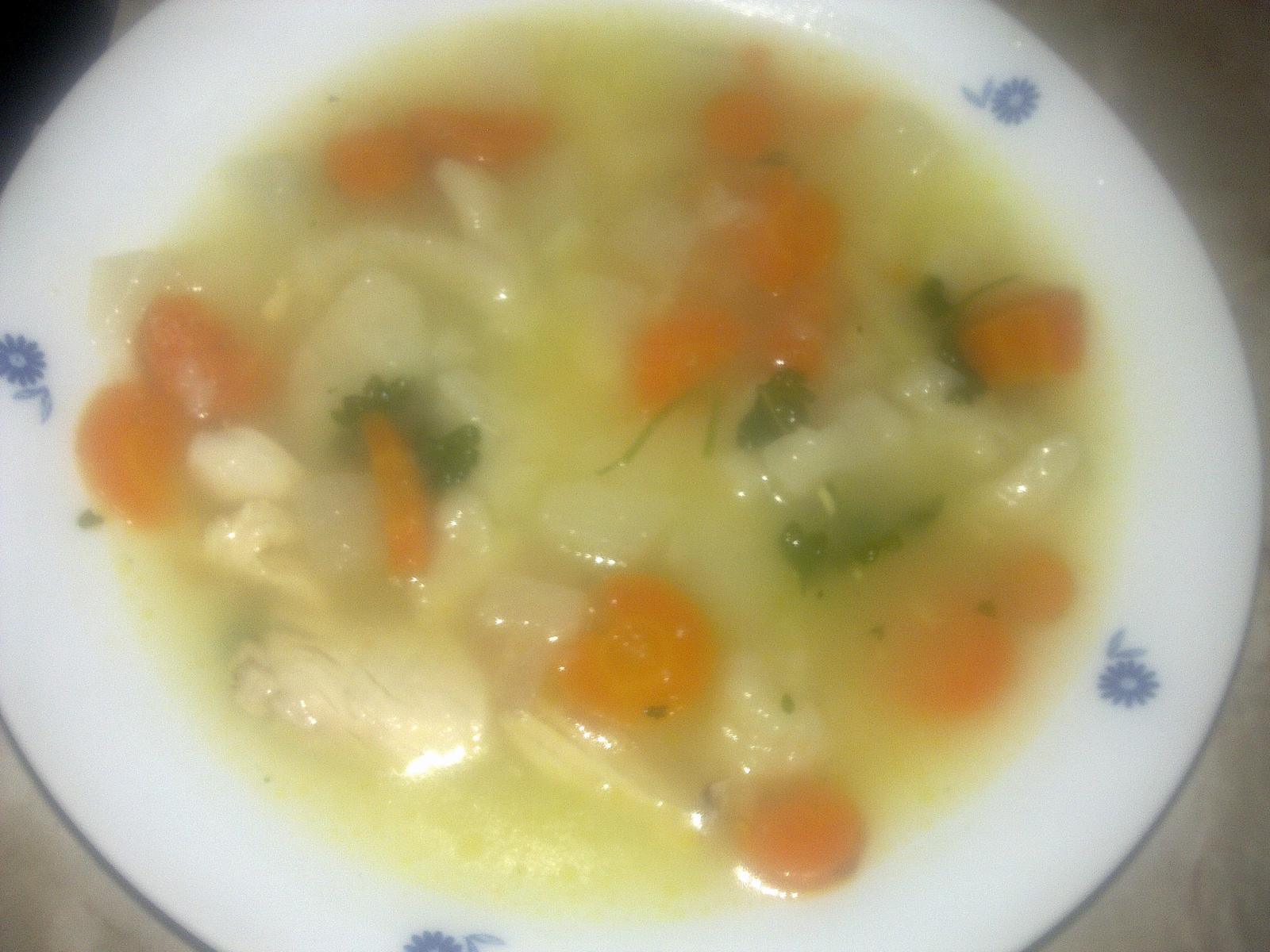 My dnes hrstkova polievka, kuracie v cesticku,zem.kasa,paradajkovy salat, zajtra zemiakovoluskovy privarok,vajicko,polievka este zostala.