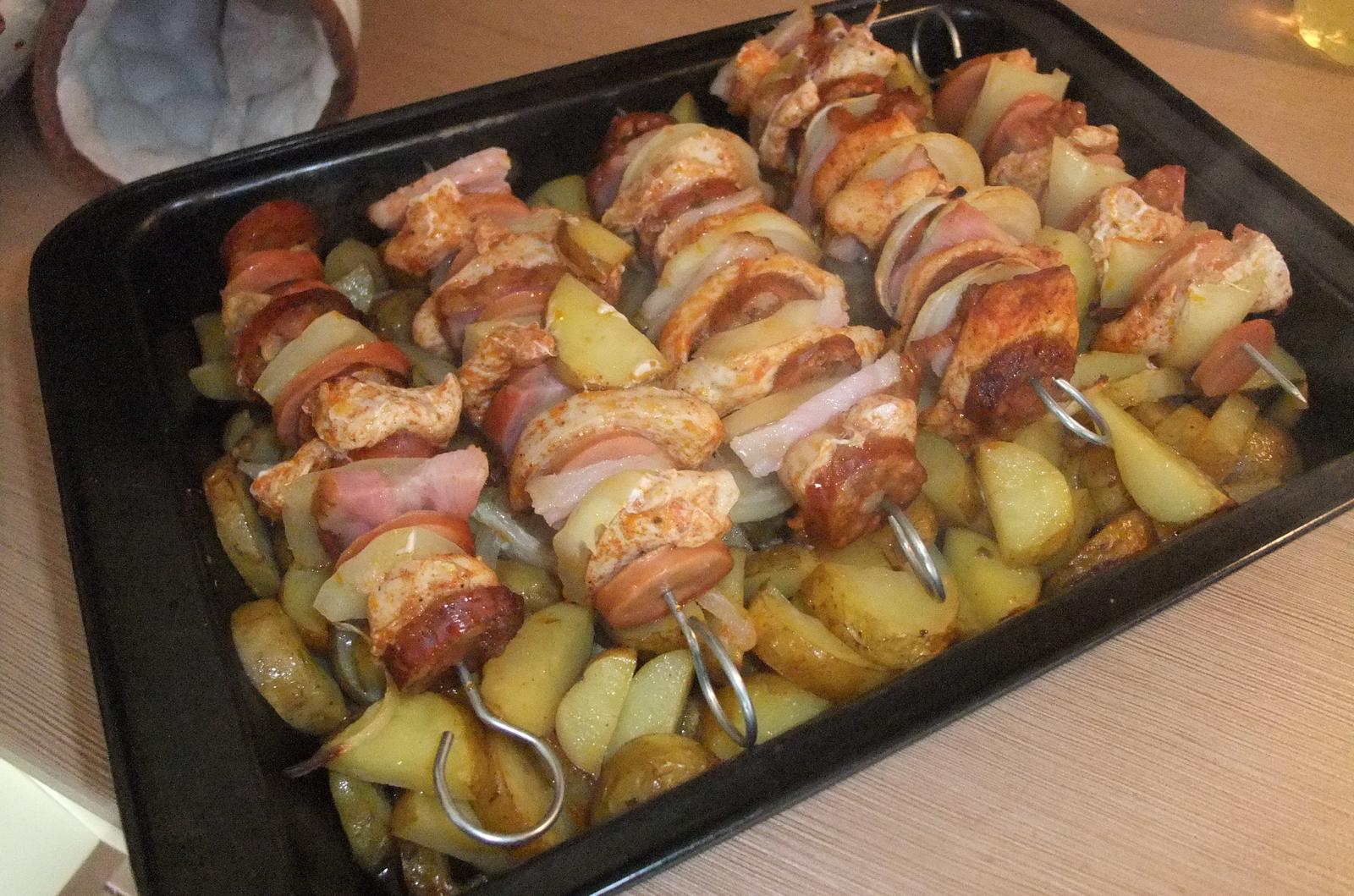 čevabčiči s novymi zemiakmi a uhorkový šalát
