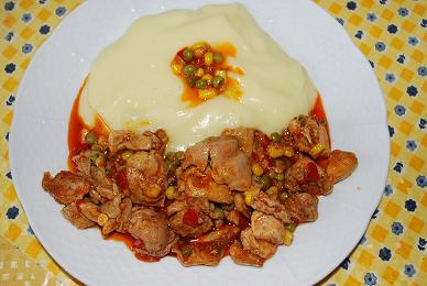Ahojte. Dnes sme čakali návštevu, tak som pripravila zeleninovo kukuricový šalát so sladkokyslou zálievkou. Na obed som robila plnené palacinky na slano so šunkou, syrom a kápiou a ako dezert som urobila zamatovú roládu. Návštevy si u nás podávali kľučku - keď jedna odišla, za chvíľu prišla druhá i tretia, takže nič z toho, čo som pripravila, som nestihla odfotiť. Ale všetkým chutilo 😉
