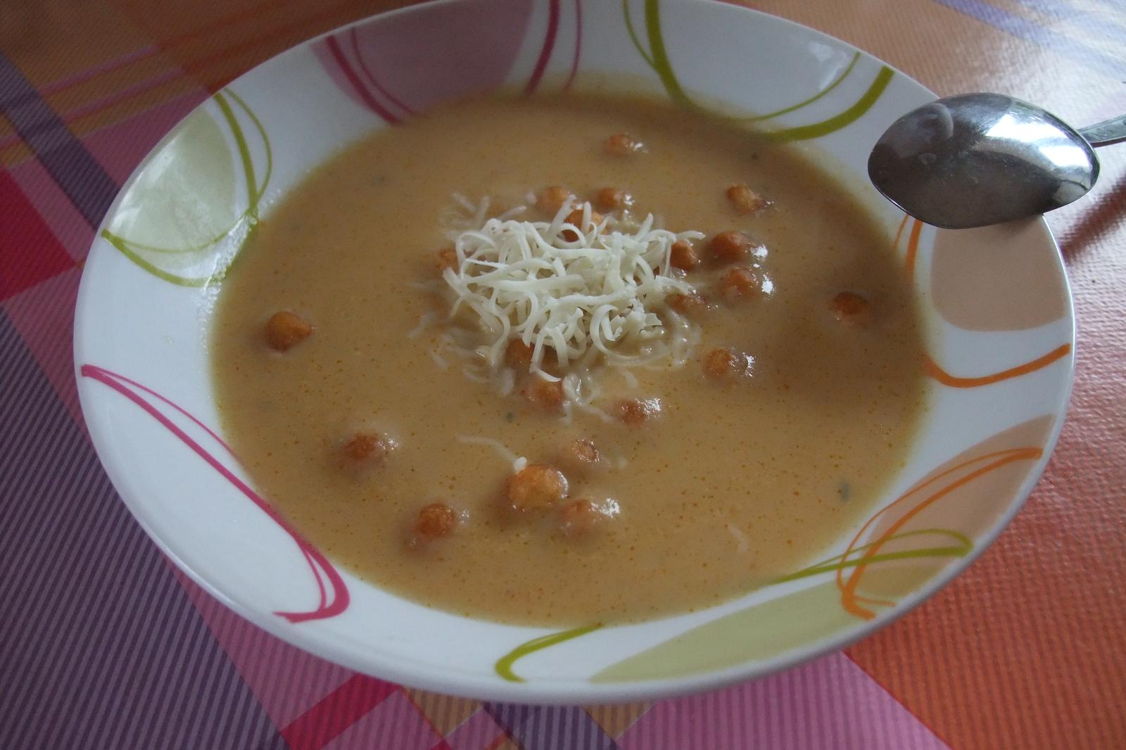 paradajkova polievka so syrom, kuracie rizoto s uhorkovym salatom