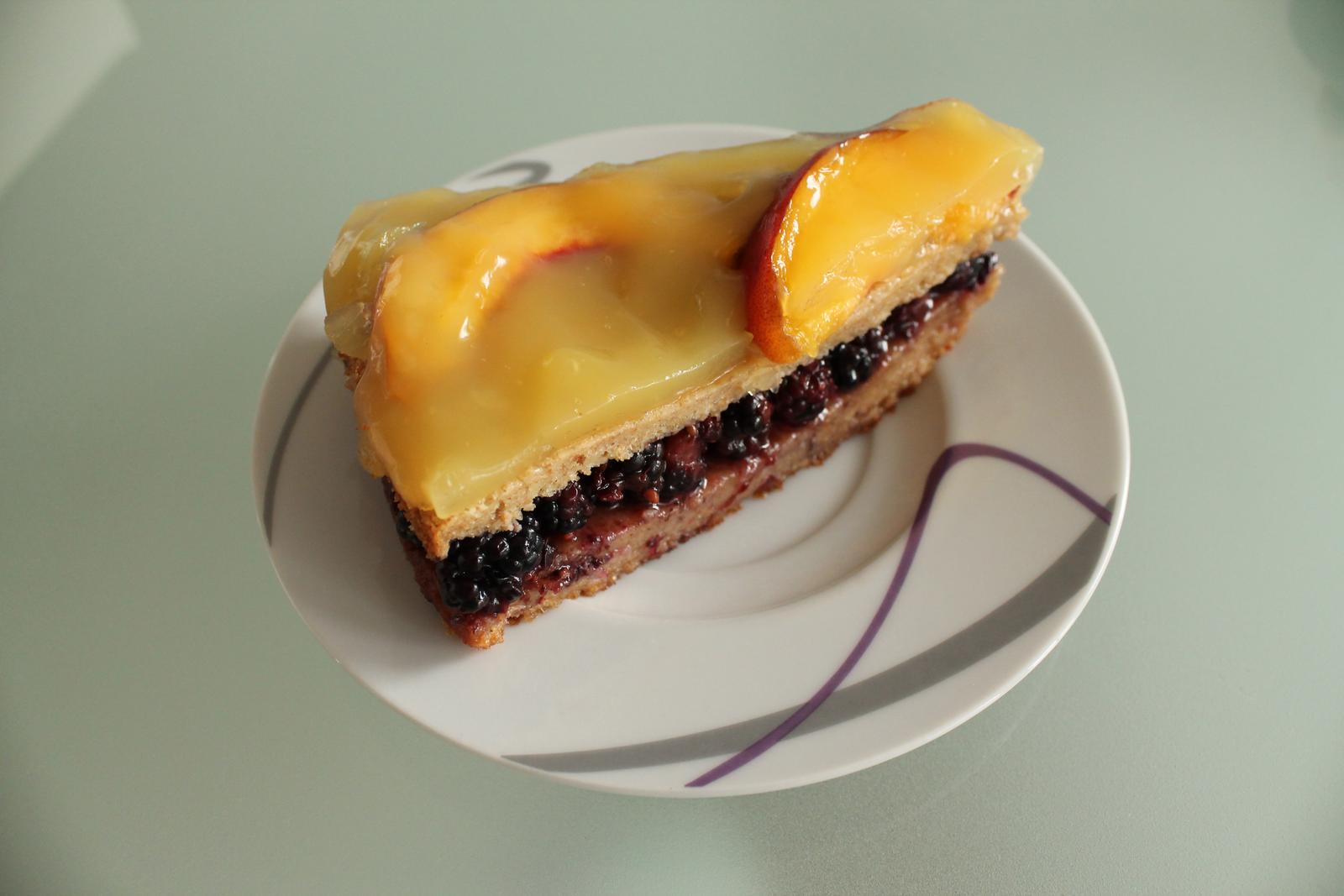 Nas olovrant: Broskynovo-cernicova osviezujuca torta zo spaldovej celozrnnej muky bez cukru a kypridla 😉
