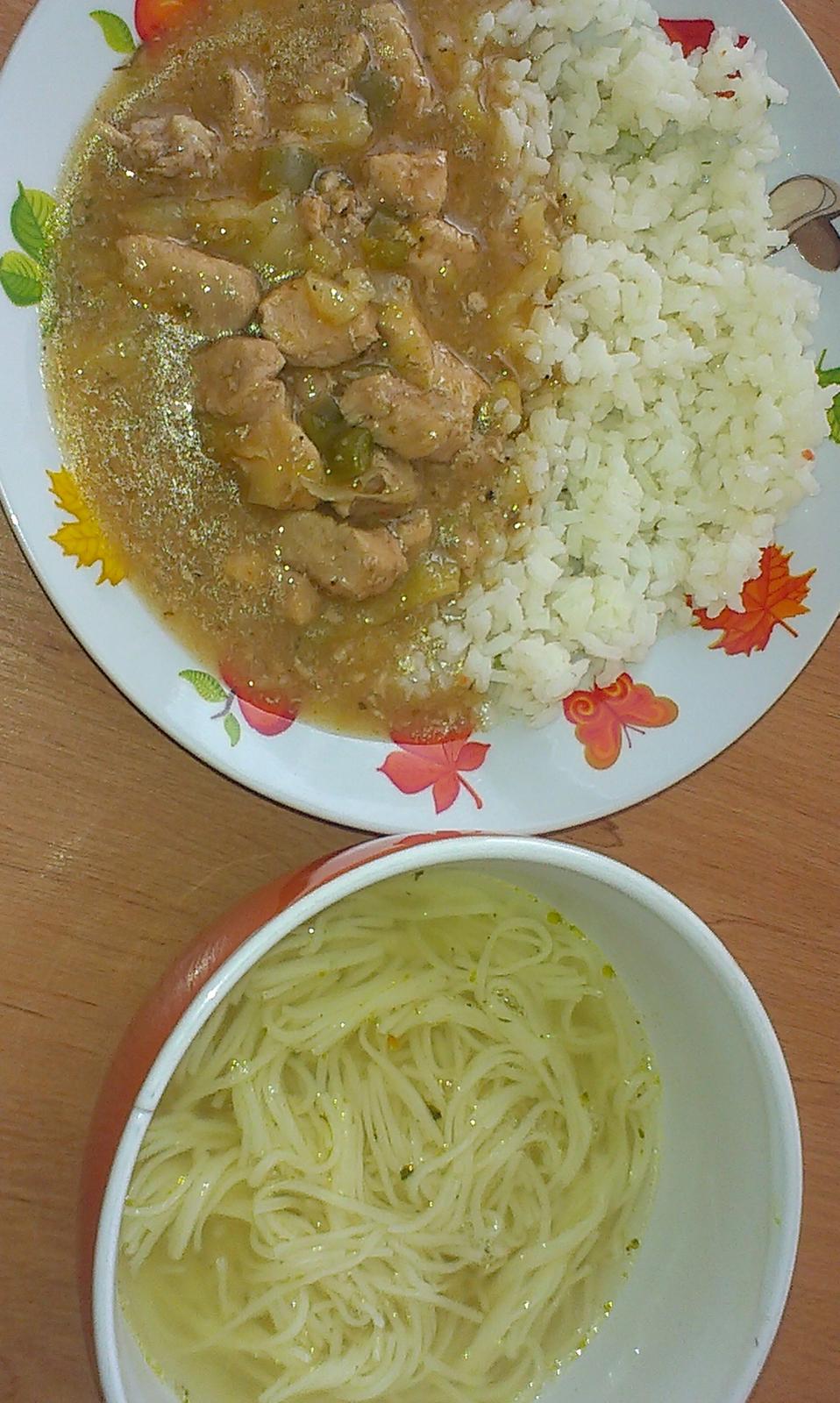 ja dnes kyslú zemiakovo - vajíčkovú polievku a kuracie mäsko na mrkvovej omáčke so zemiakovou kašou 🙂