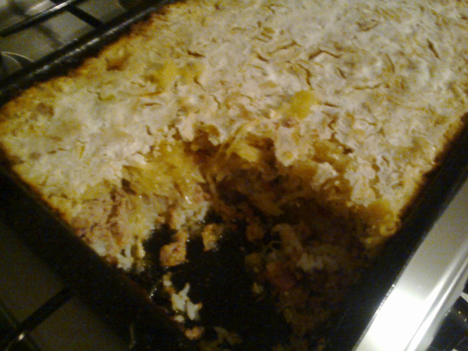 Do zapekacej misy dam uvarene zemiaky, tak besamel, tak masovu omacku, tak opat besamel a dam piect na 200 °C 30 minut. Potom uz len ulozim platky syra, ktore sa v tejplej rure pekne roztecu emoticon
