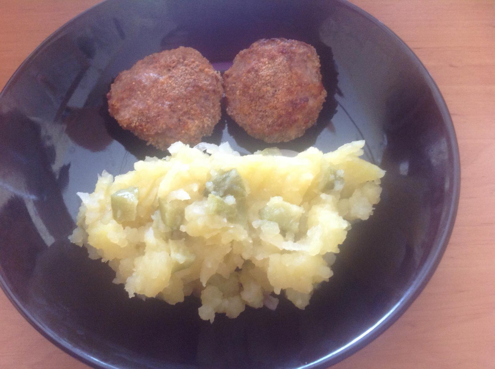 My zeleninkova polievka s krupami a ovs.vlockami, zemiakove pyre,rybacie fasirky,uhorka .Zajtra kuraci paprikas a slepaci vyvar a nejaky ovocny kolacik 🙂