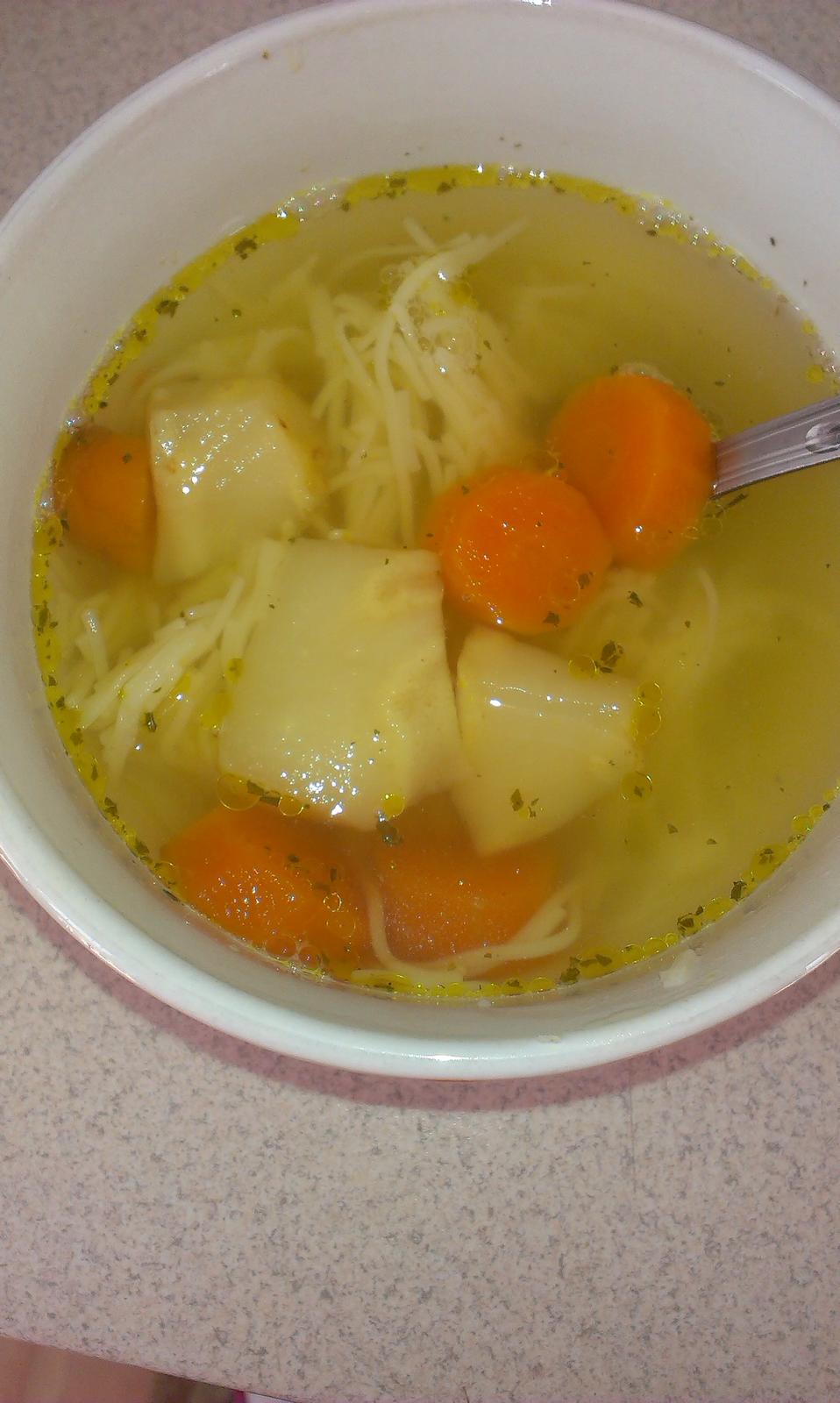 bravčový vývar s rezancami a fašírka pečená v rúre so zemiakovou kašou a zeleninovým šalátom 🙂