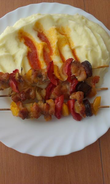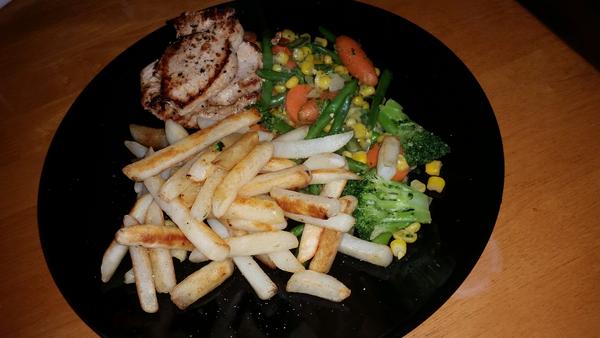 Tak ja som nejak nestihala napisat posledne dni... mali sme ryzove cestovinky so syrom a zeleninou a troskou slaninky/sunky (kto co chcel), potom cigansku pecienku so zemiakovou kasou... a dnes bravcove platky na prirodno s oreganom a tarhonou, zeleninkova obloha.