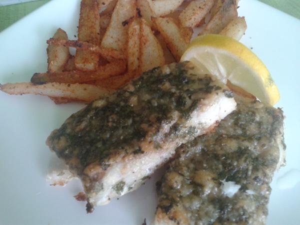vcera: rybie file v kruste z parmezanu a petrz. vnate.