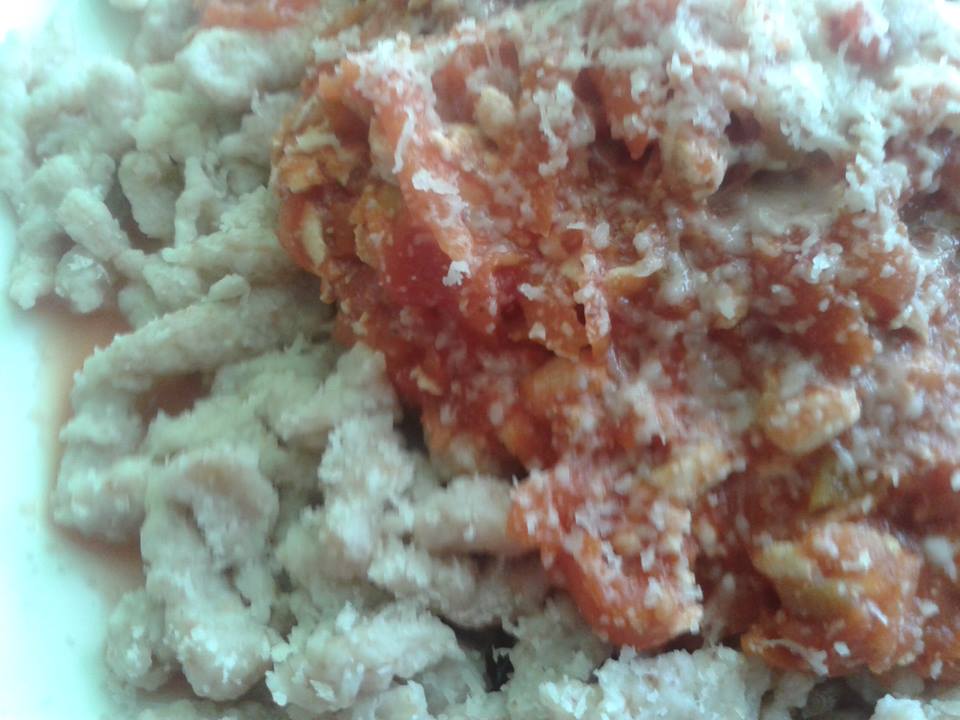 dnes: cz specle, omacka bolognese z tofu, posypane parmezanom.