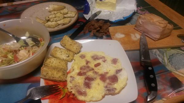 Dnes dusene bravcove so slaninou a sampinonmi,k tomu slovenska ryza...zajtra kuracia rolada plnena cerstvym syrom a spenatom,obalena v slanine k tomu pecene zemiaciky,pondelok bude fazulova polievka s udenym maskom a zemiakove pagaciky... 🙂