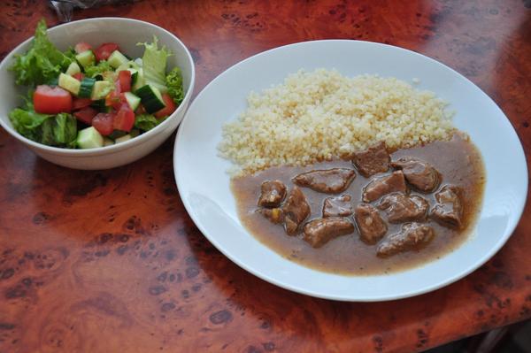 Vcera sme meli krkovicku na mrkvicce a cervenem vinu s bramborama. Kureci vyvar. A dneska sme dojedli vyvar a udelala sem segedin 🙂 mnam