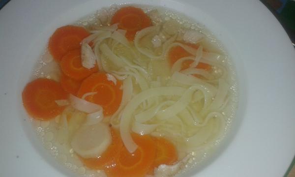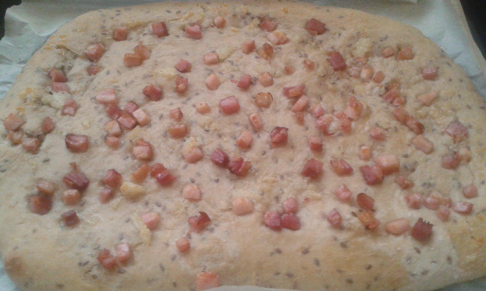 Dnesny obed-vyvar pre maleho pacienta s horuckami a pre nas slaninkovo cesnakovy posuch (cesto je podla receptu na chlieb bez miesenia)