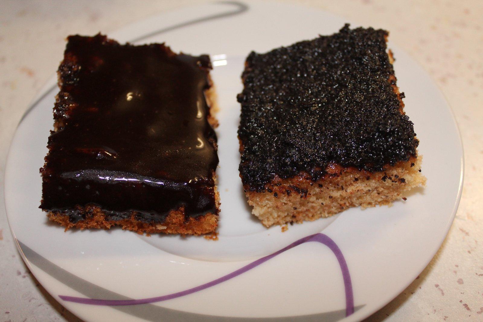 a kolaciky (piskotove cesto z celozrnnej spaldovej muky) ... s lesnym ovocim v zelatine zo zl. klasu, kakaovou polevou a makovou "plnkou" (sladene len medom) 🙂