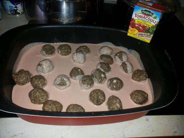 na pekáč som dala jeden veľký pórna kusy, dve veľké jablká nakrájané na kúsky , červená hrubostenná paprika na kúsky na to som poukladala mäsko osolené a okorenené korením kebab natur, naliala som na to smotanu naukladala jednu domácu klobásu nakrájanú a nasypala strúhaný syr a nechala zapiecť