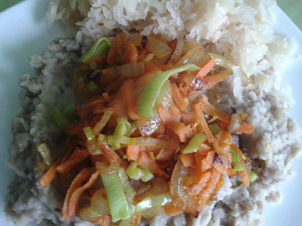 8.kasa z cervenej sosovice a krupov, na vrchu oprazena cibulka, por, mrkva