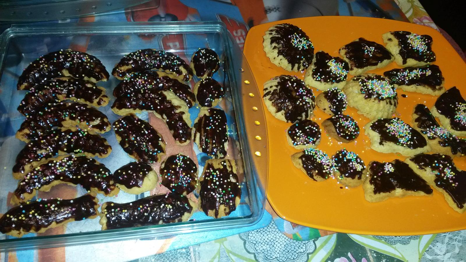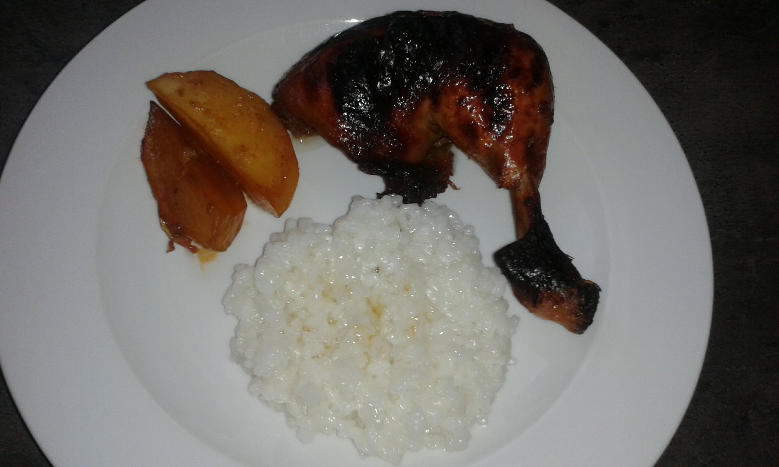 v piatok medové kuracie prsia s kokosovou ryžou, v sobotu zapekané zemiaky s cuketou a včera (a dnes) zeleninková polievočka s haluškami, kuracie prsia so šunkou, syrom a ananásom a k tomu ryžu a keďže má tatinko narodeniny, urobila som ako koláčik ku kávičke sandokanové oči 😉 😉 😉 myslela som, že mu pribalím aj do práce, ale neostalo...