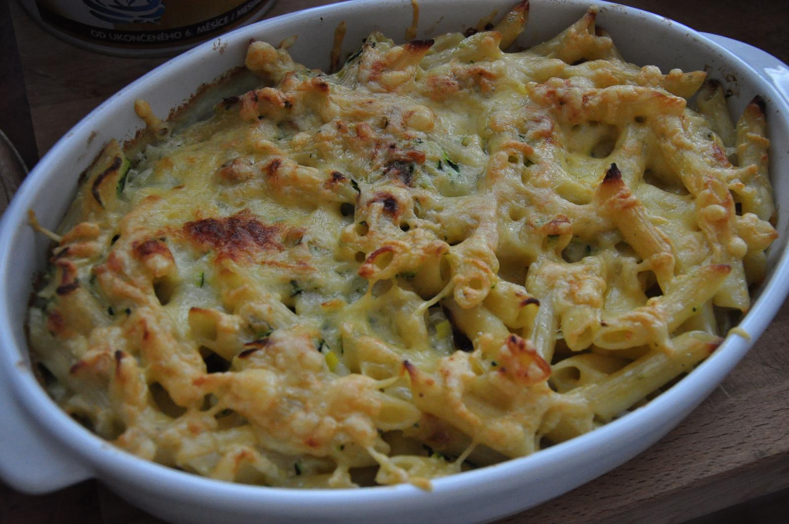 Dnesny obed vajickova polievka a zapekane cestoviny a cukinou,nivou,mozzarelou,pórom,smotanou