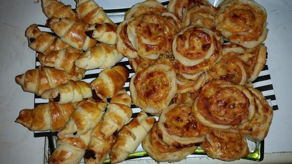 Ahojte. Manžel zas celé dni v práci takže musím dojedať len ja🙂 Cez víkend som robila hovädzí vývar a plnenú papriku so zemiakmi, dnes ešte dojedám morčacie špízy a pri telke zobkám koláče. :D pridávam fotku mojich prvých pokusov o langoše, nutelové croissanty, pizzové koliečka z minula a môj najobľúbenejší pudingový koláč s pochúťkovou smotankou🙂