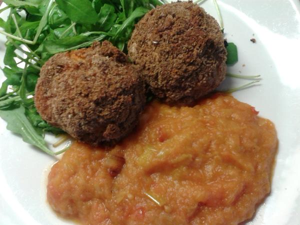 dnes karfiolove lopticky s rajcinovo-baklazanovou omackou.